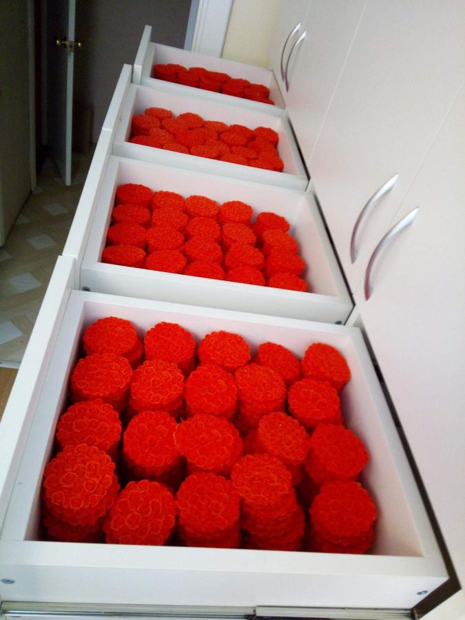 На создание этого бонсая у меня ушло примерно 2 месяца. На нем 122 цветочка , 130 бутончиков и 104 листочка. Высота этого бонсая 35 см.