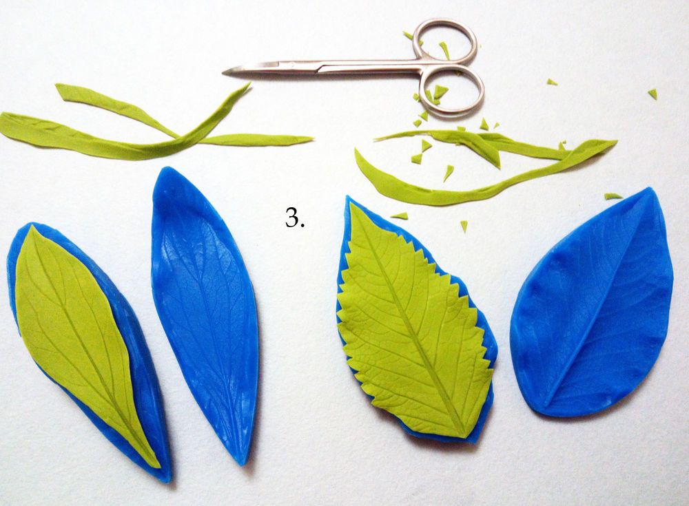- Затем берем ножнички и срезаем лишнюю глину по отпечатавшемуся краю. И смотрите, что у нас получилось - отличный естественный край, как у настоящего живого листа - смотри фото:
