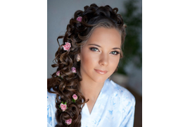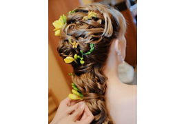 Живые цветы в прическе.