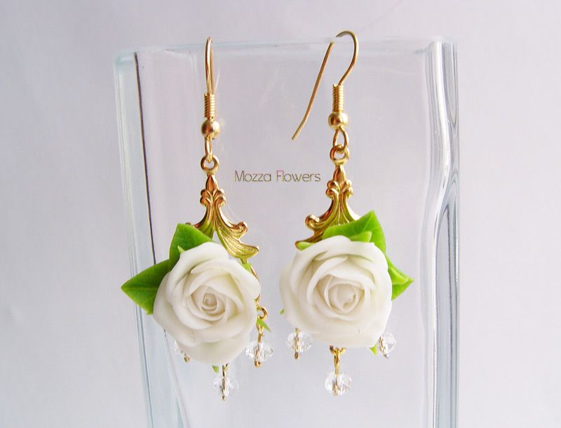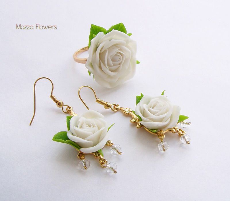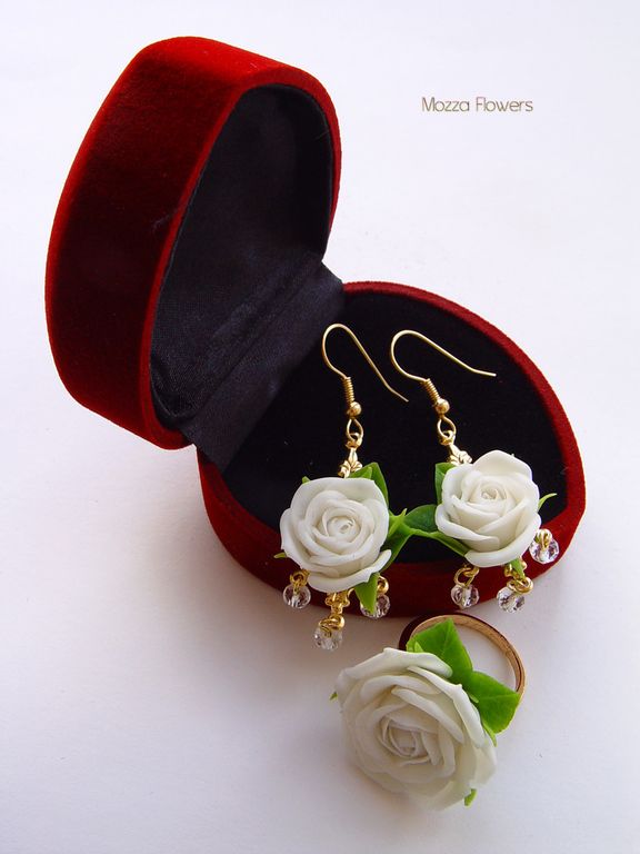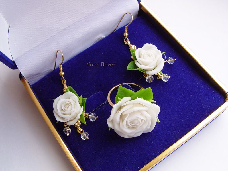 Комплект "Свежесть белых роз" выполнен из полимерной глины и тонирован масляными красками полностью вручную.