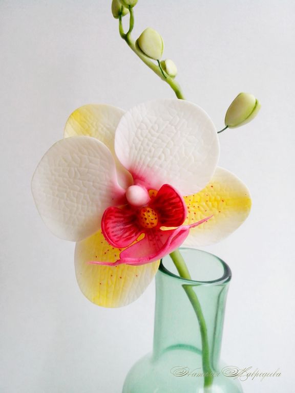 Орхидея "Летняя" выполнена из полимерной глины и тонирована масляными красками полностью вручную.