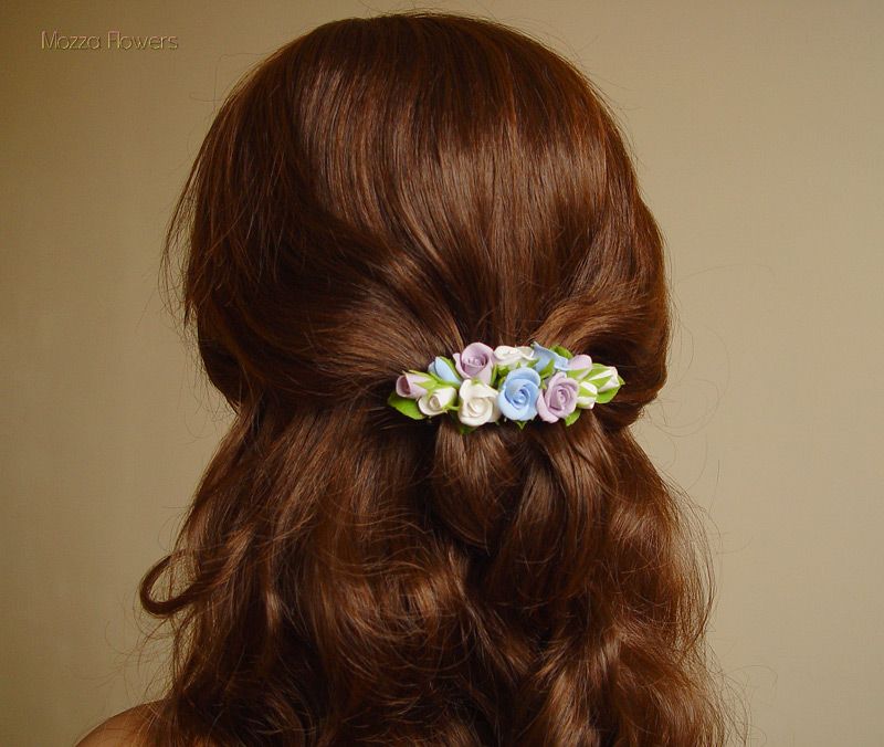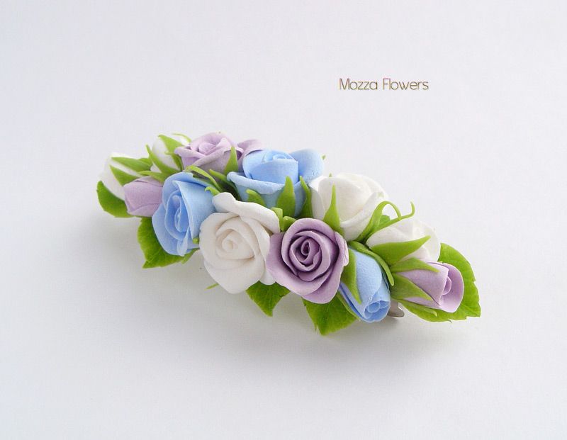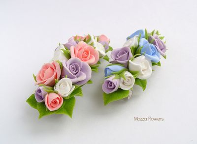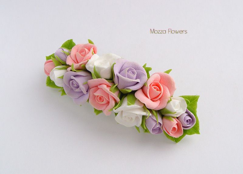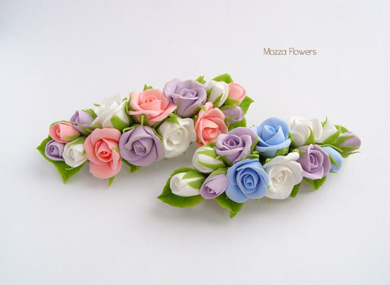 Заколки-автоматы "Нежные розочки" выполнены полностью вручную из двух видов полимерной глины.
