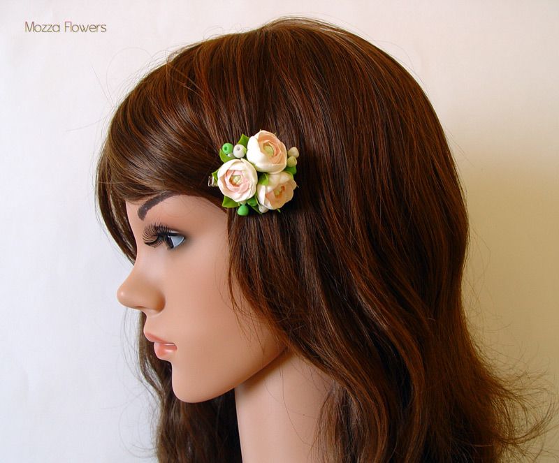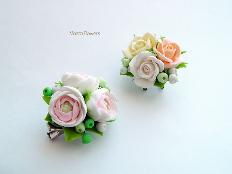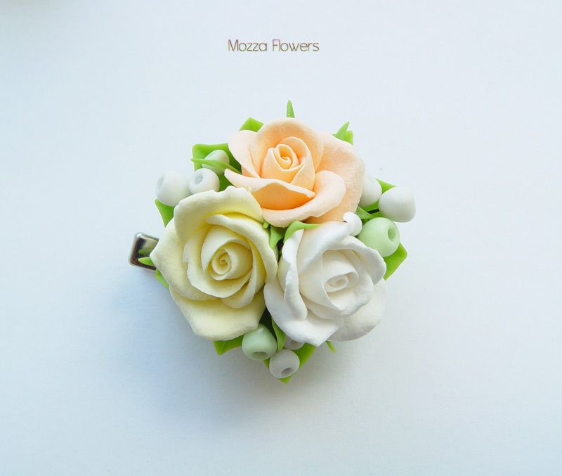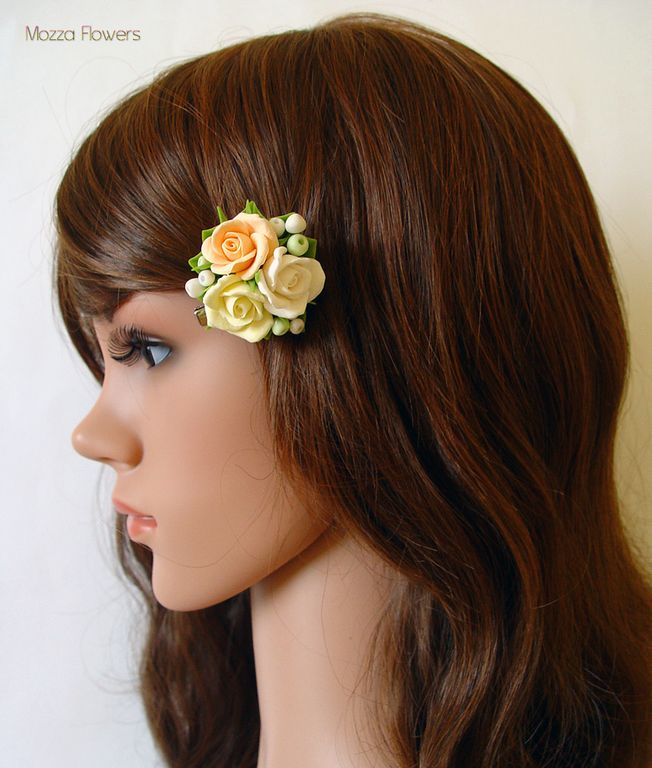 В наличии есть заколка с бело-желто-оранжевыми розочками.