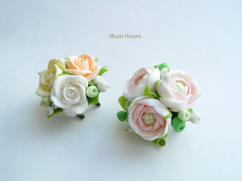 Зажимы-брошки (два в одном) выполнены полностью вручную из самоотвердевающих полимерных глин.