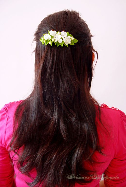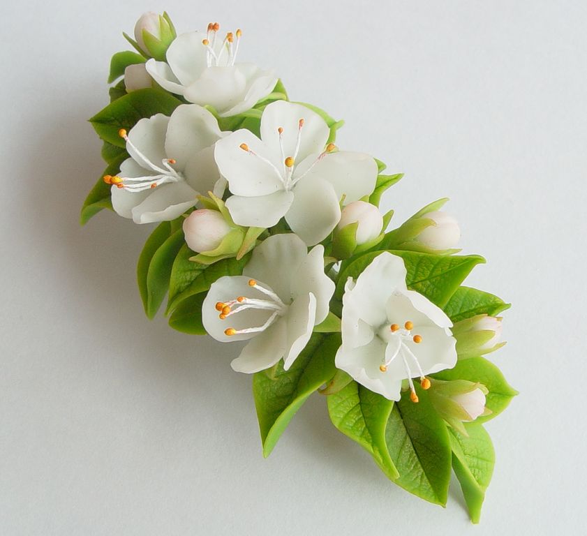 Заколка-автомат выполнена вручную из полимерной глины, слеплена лепесток за лепестком, листик за листиком и тонирована масляными красками.