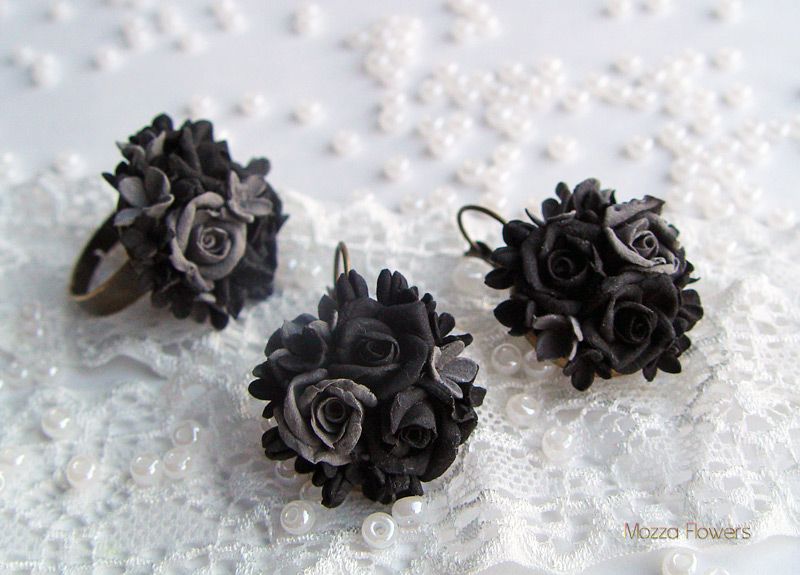 Все цветы в комплекте слеплены из полимерной глины вручную.