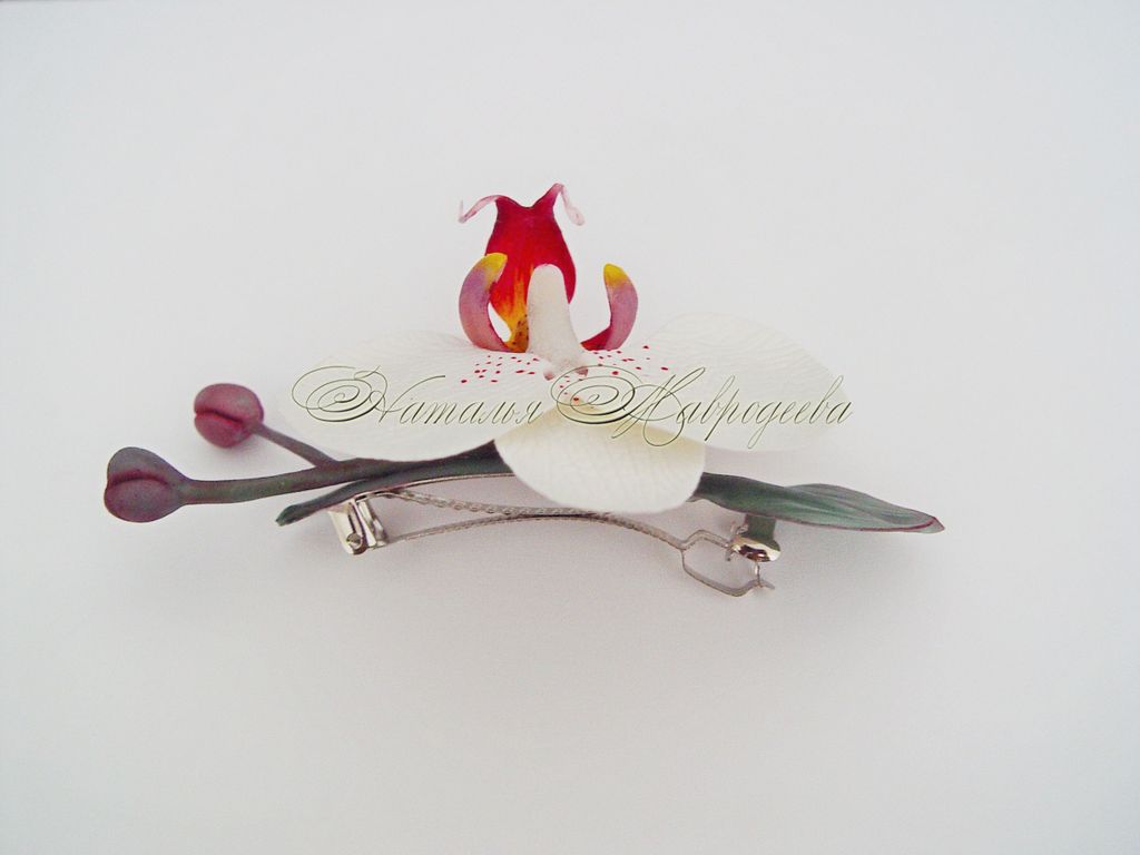 Вы можете заказать не только заколку с орхидеей, но и любое другое украшение с такой же орхидеей, либо с несколькими орхидеями : брошь, ободок, колье, серьги, кольцо, шпильку, кулон, браслет и т.д.