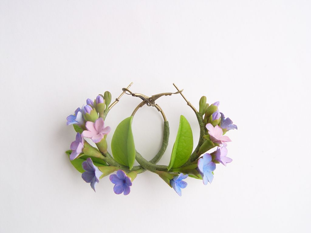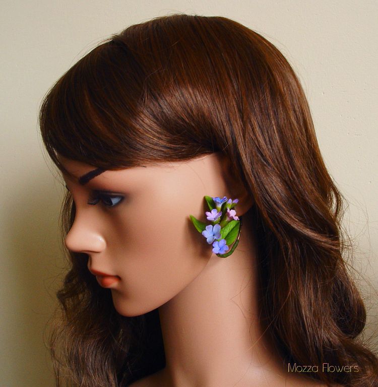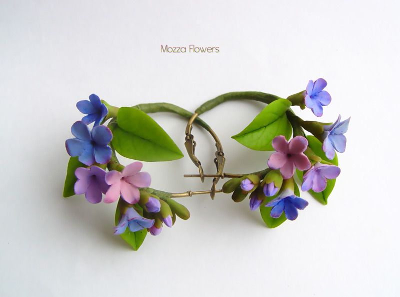 В Уральских лесах цветет очень красивый небольшой цветок, который называется "медуница". На создание этих сережек вдохновили именно живые цветы медуницы.
