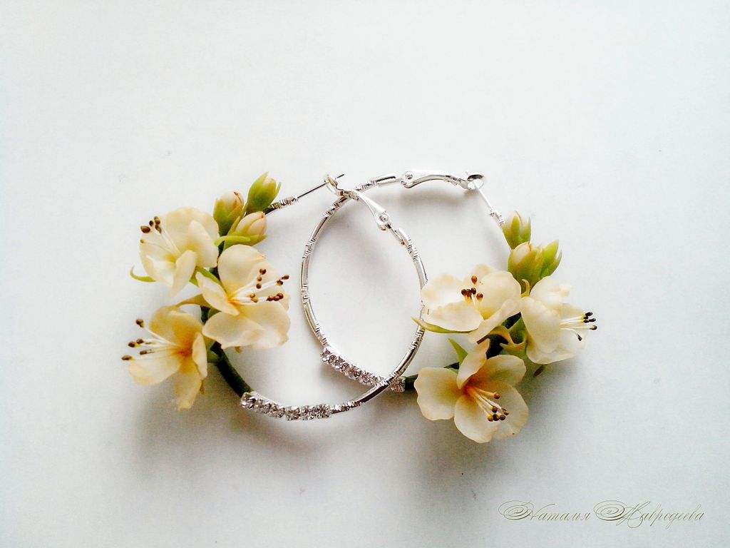 Серьги с цветами нежно-розовой яблони выполнены из полимерной глины и тонированы масляными красками полностью вручную.