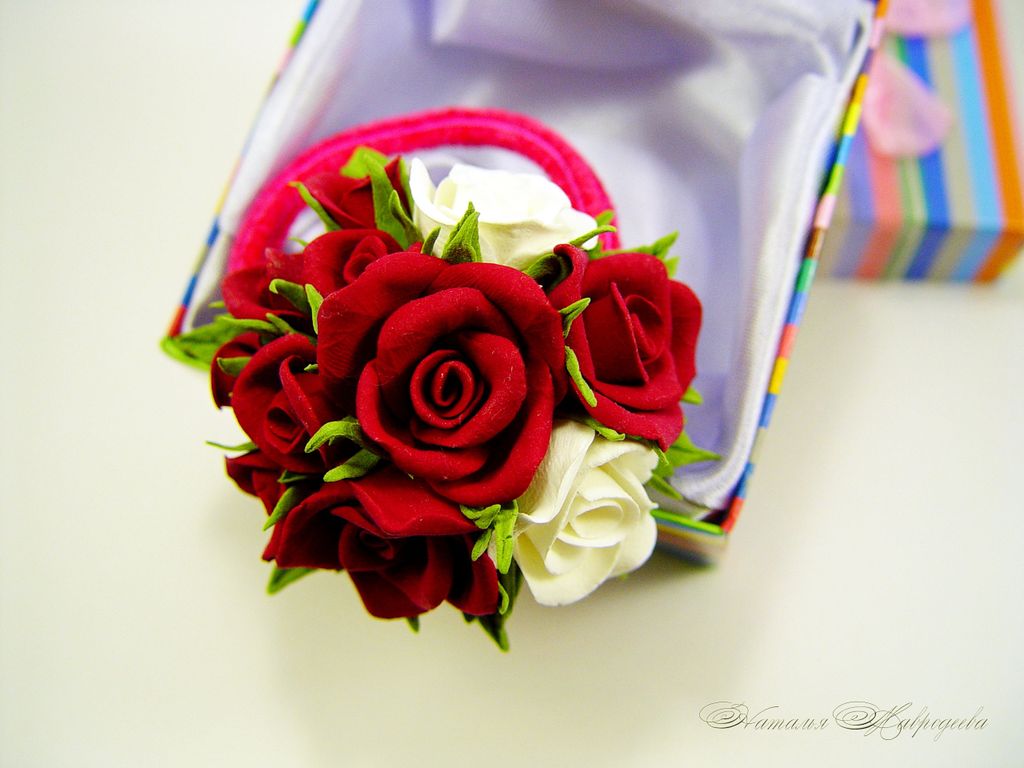 Эта резинка может стать прекрасным и полезным подарком ,потому что это одновременно и букетик цветов , и украшение для волос !