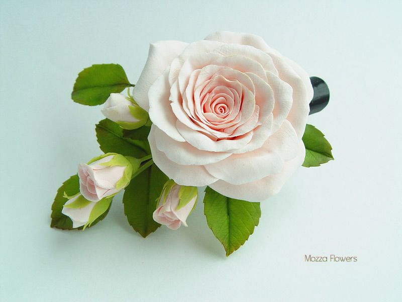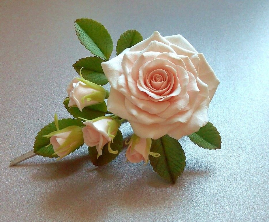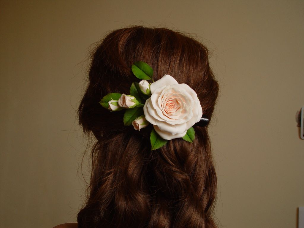 Зажим для волос "Аромат чудесных роз" выполнен из самоотвердеваемых глин и тонирован масляными красками полностью вручную.