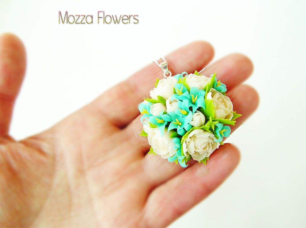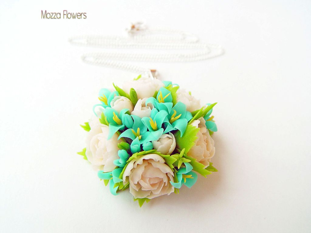 Кулончик выполнен полностью вручную из полимерной глины (холодныйфарфор), слеплен лепесток за лепестком.