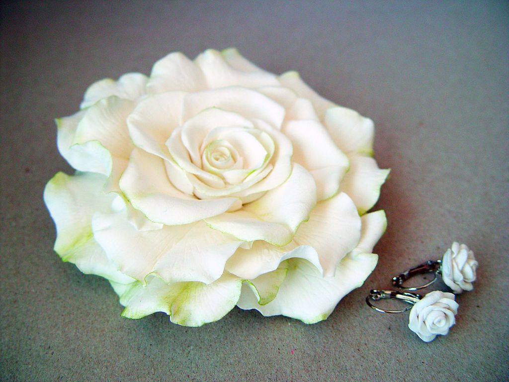 Зажим с цветком розы выполнен вручную из полимерной глины и тонирован масляными красками.