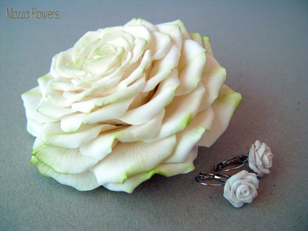 Цветок диаметром 12 см, но несмотря на это практически невесомый, потому что выполнен из суперлегкой полимерной глины.