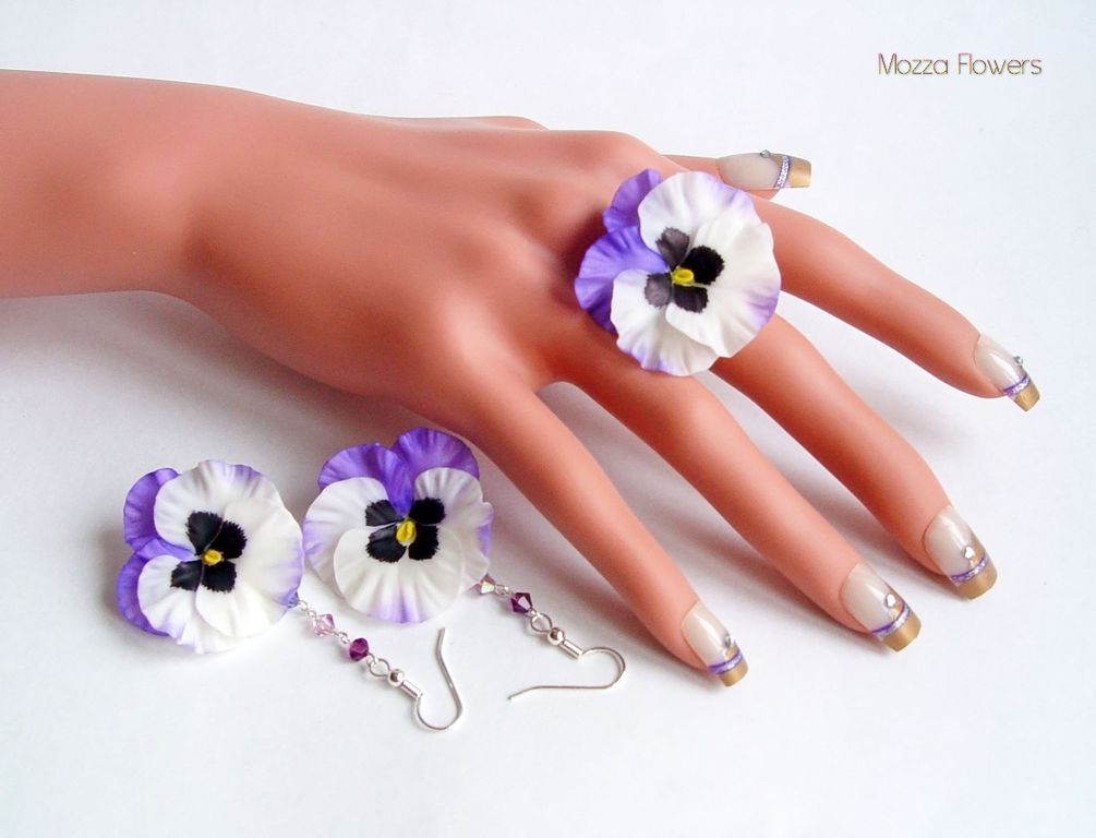 Комплект состоит из кольца и сережек.