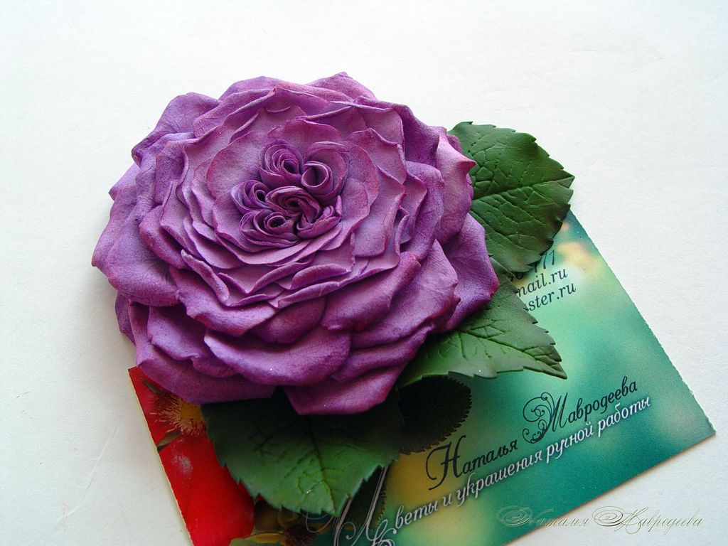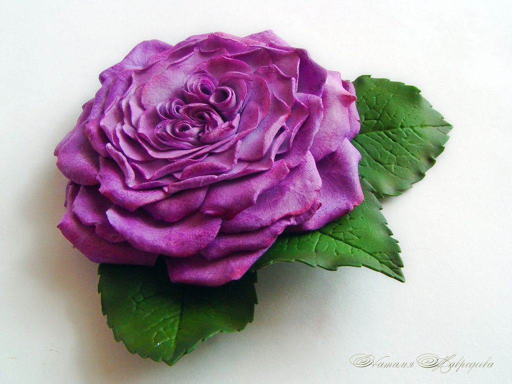Прекрасная сиреневая роза выполнена из полимерной глины на универсальной основе заколка-брошь, то есть ее можно использовать и как заколку, и как брошь.