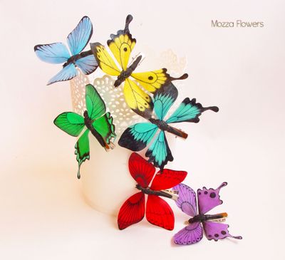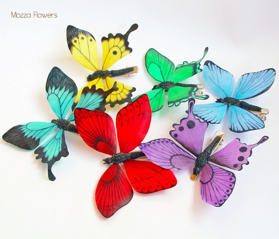 Бабочки выполнены из самоотвердеваемой полимерной глины и расписаны полностью вручную.