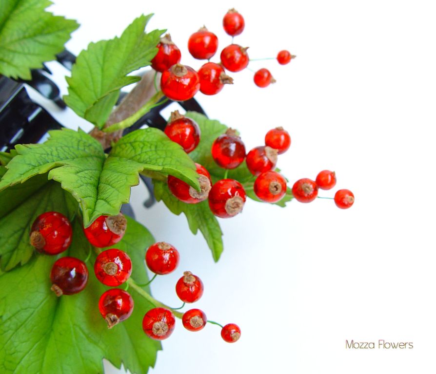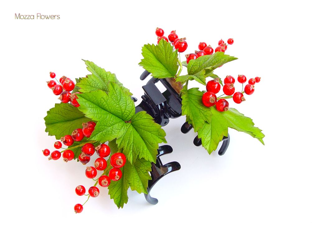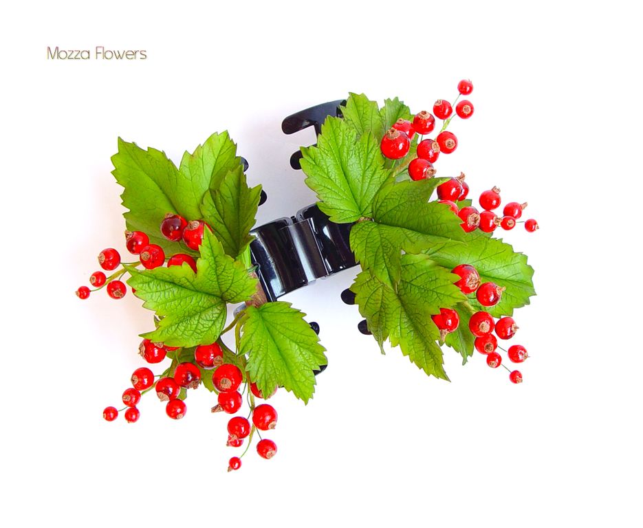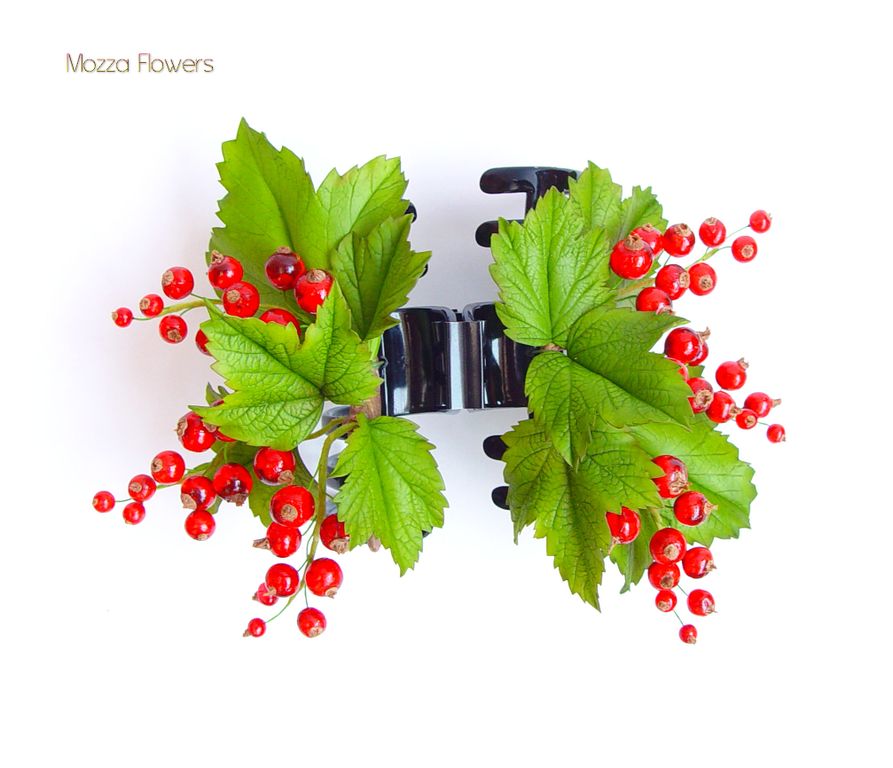 Заколка-краб с красной смородиной выполнен полностью вручную из полимерной глины и эпоксидной смолы и тонирован масляными красками.