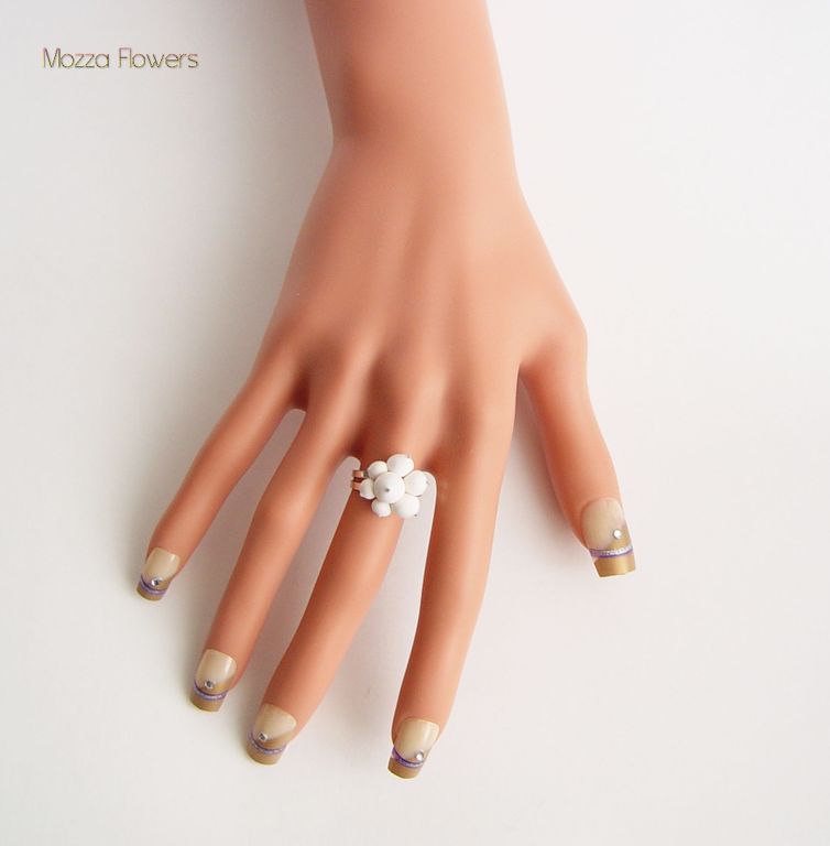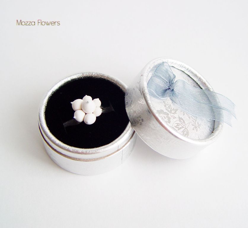 Кольцо со снежными ягодками выполнено полностью вручную из бархатной полимерной глины.