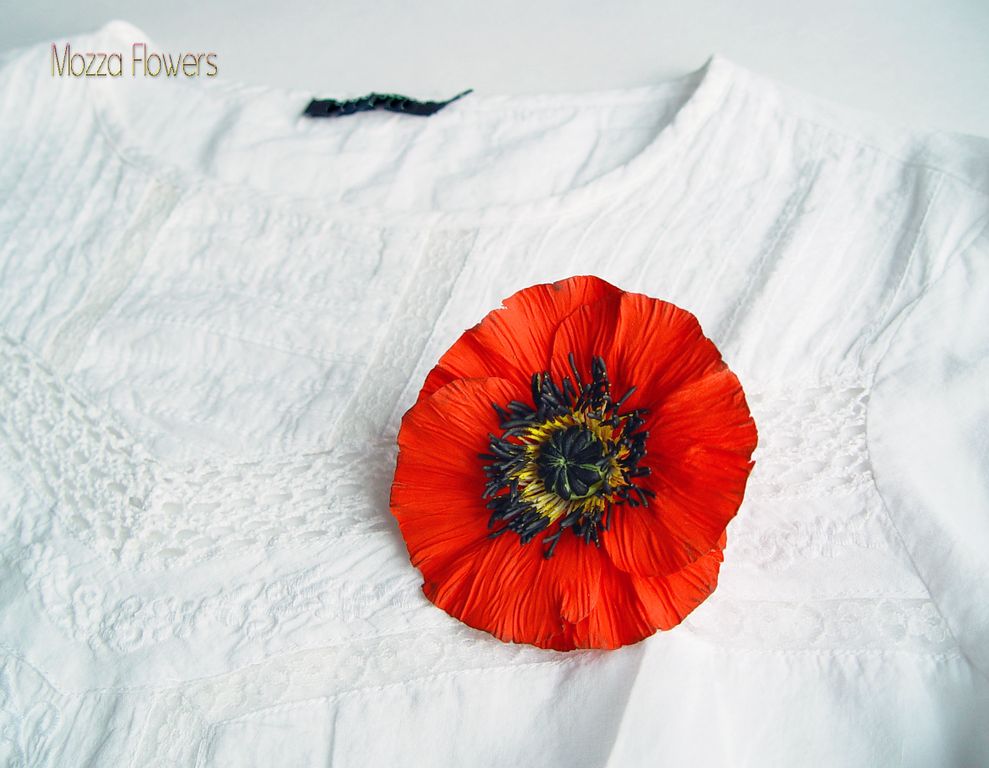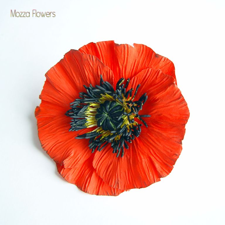 Завораживающий ярко-красный мак выполнен полностью вручную из самоотвердеваемых полимерных глин и тонирован акрилом полностью вручную.