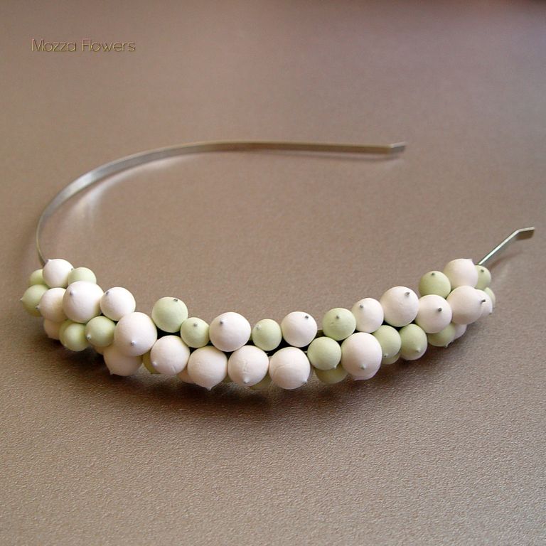 Ободок со снежноягодником выполнен из полимерной глины полностью вручную.