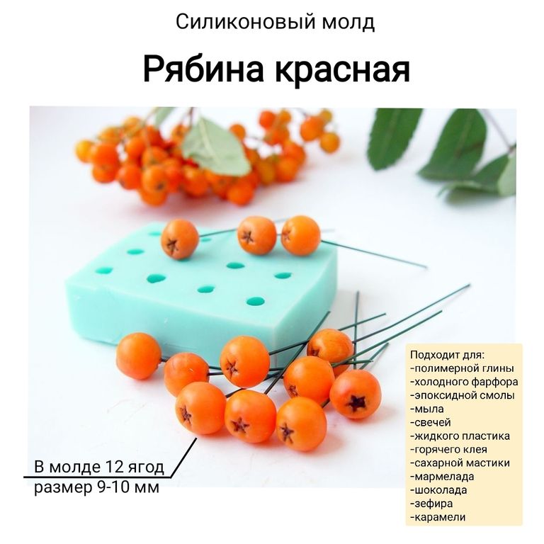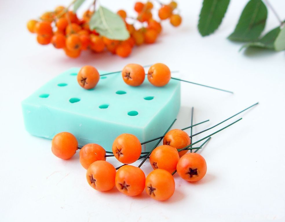 Молд позволяет передать мельчайшие детали настоящих ягод красной рябины со всех сторон, так как выполнялся с настоящих ягод.
