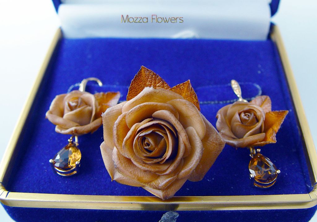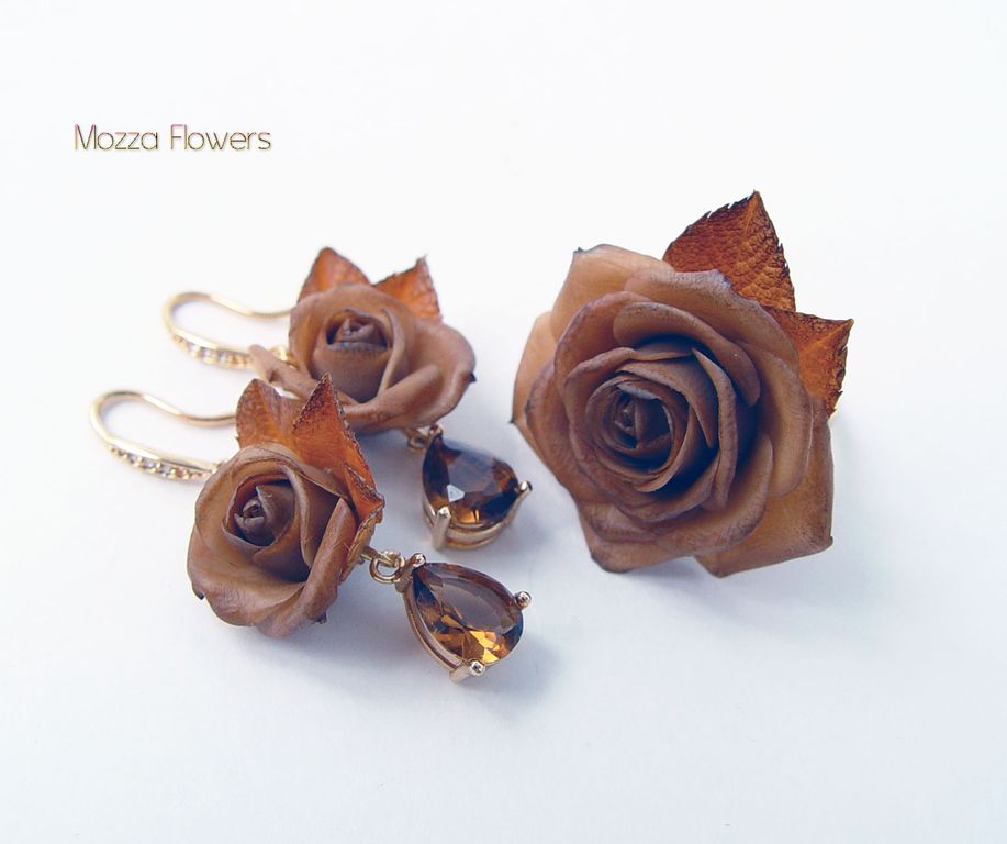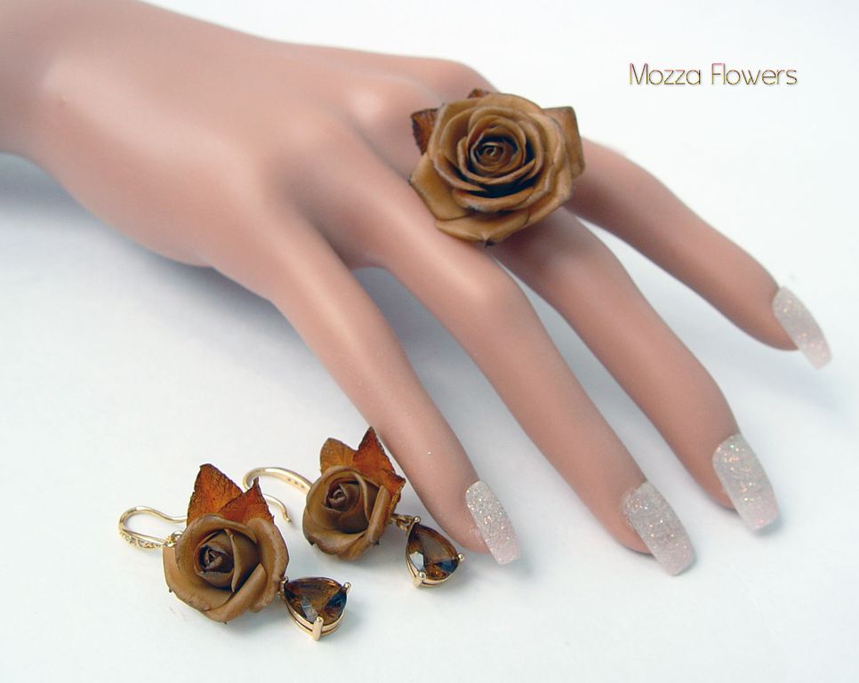 Шоколадный комплект с розами выполнен полностью вручную из полимерной глины и тонирован масляными красками.