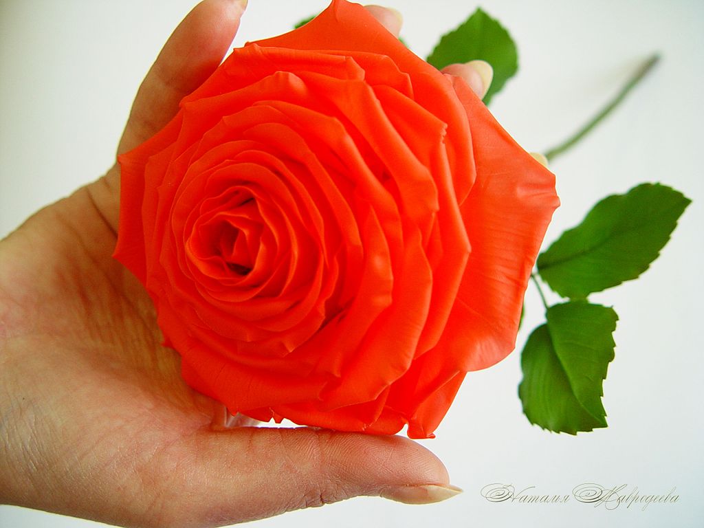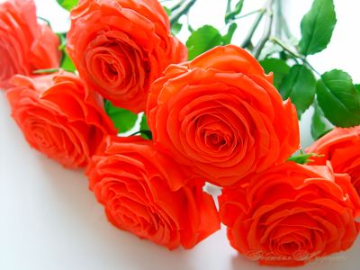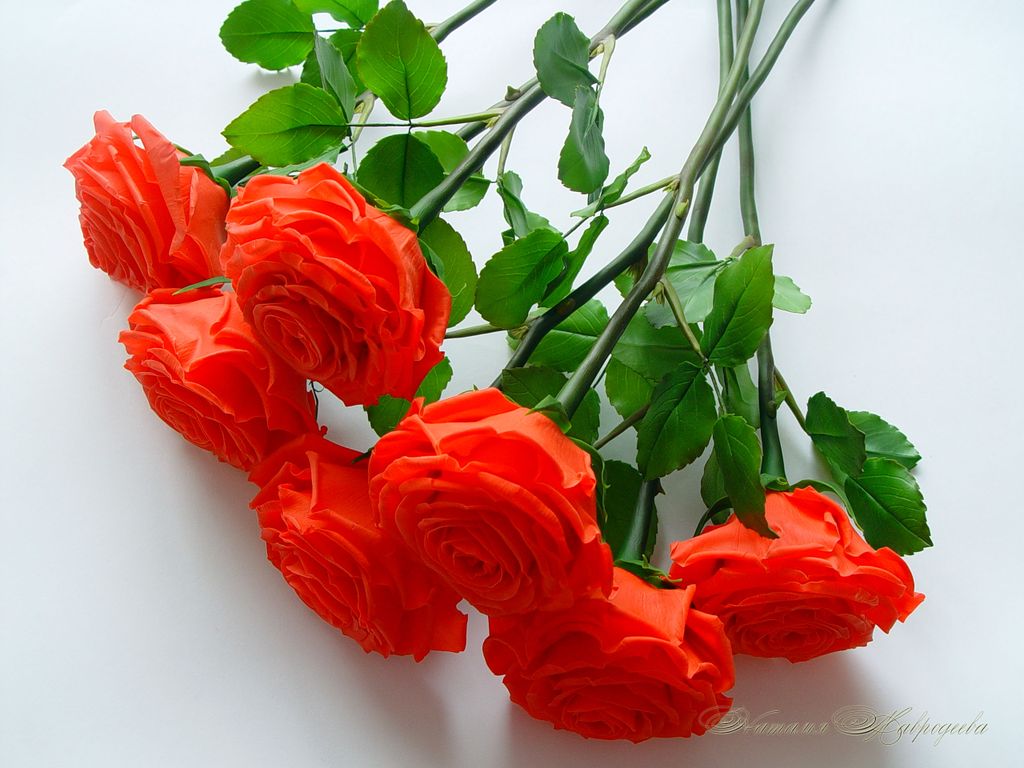 Розы выполнены в натуральную величину высотой около 45 см, диаметр бутонов 9-10 см.