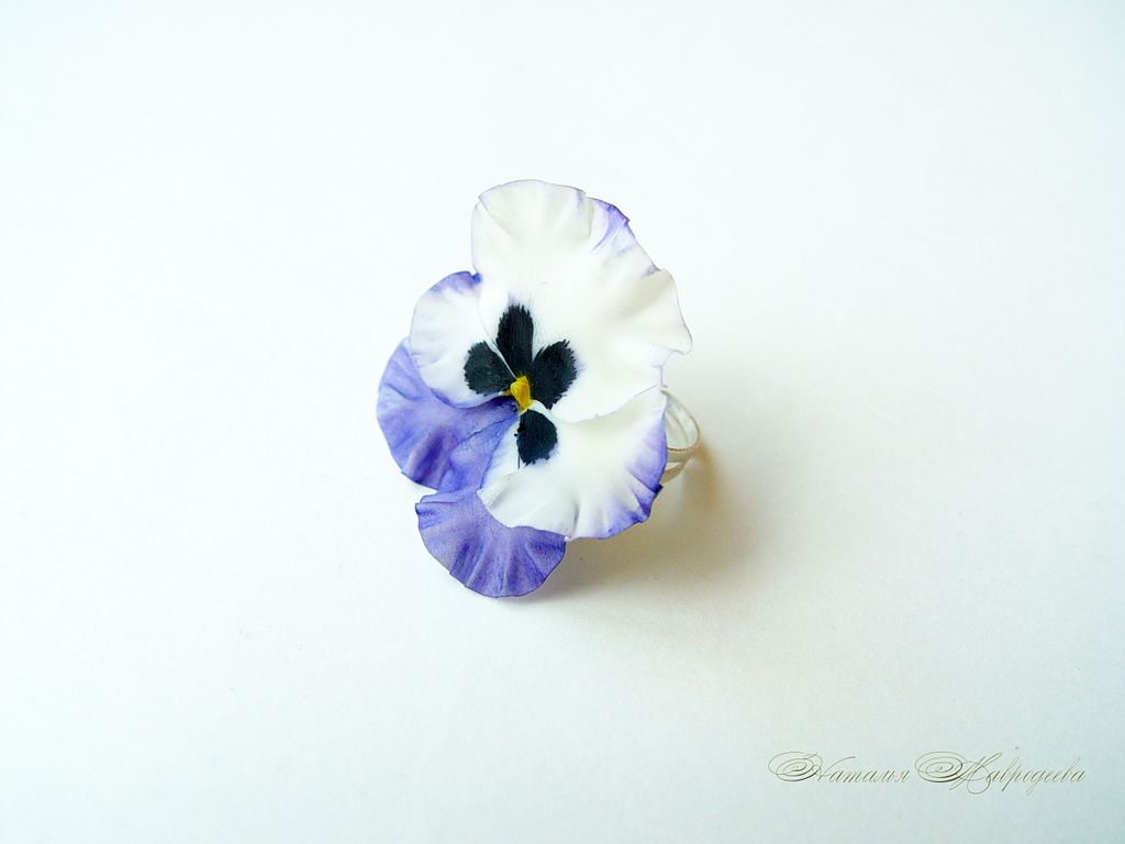 Кольцо слеплено из самозастывающей полимерной глины лепесток за лепесток и тонировано маслом полностью вручную.