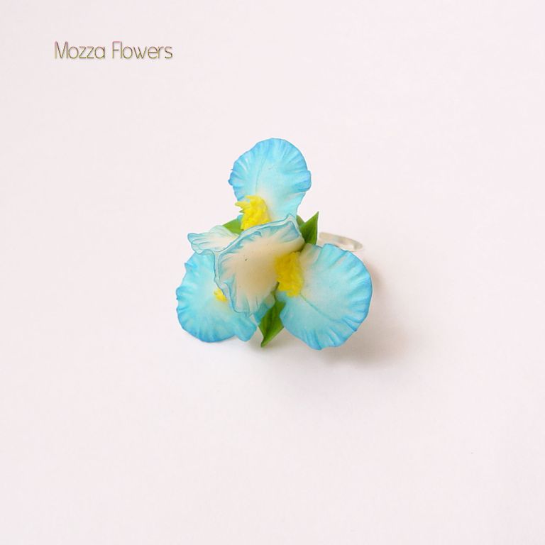 Кольцо с ирисом выполнено полностью вручную из полимерной самоотвердевающей глины и тонировано маслом.