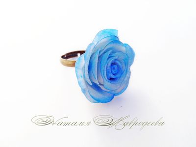 Кольцо "Морской прибой" выполнено из полимерной глины и тонировано масляными красками вручную.