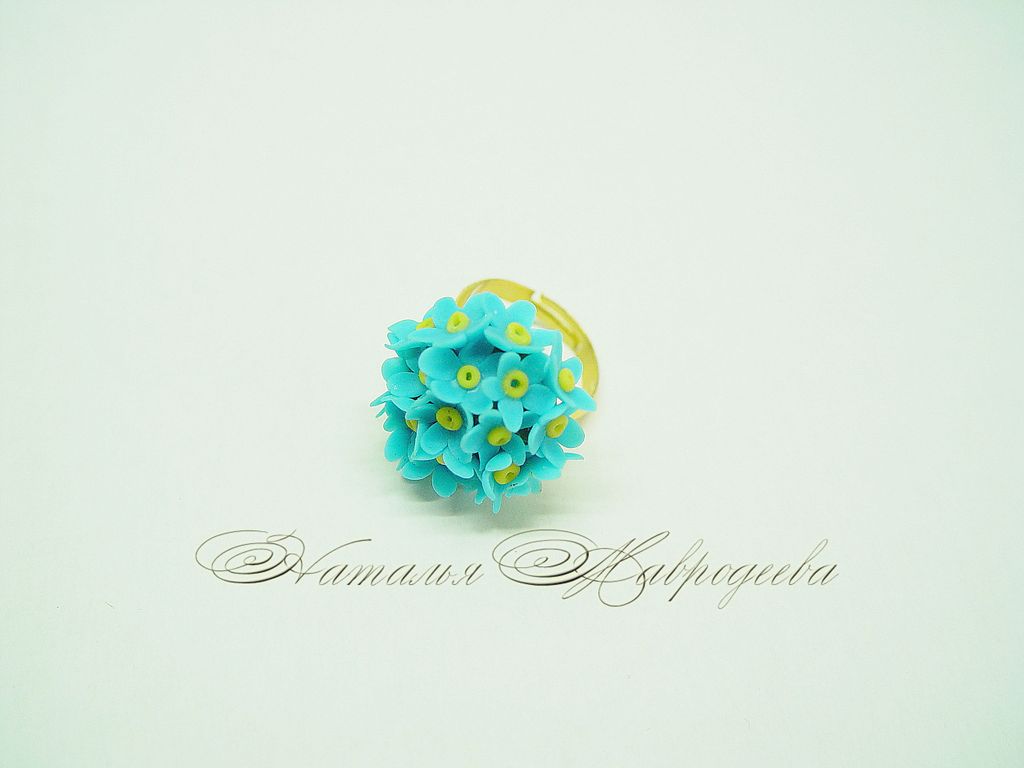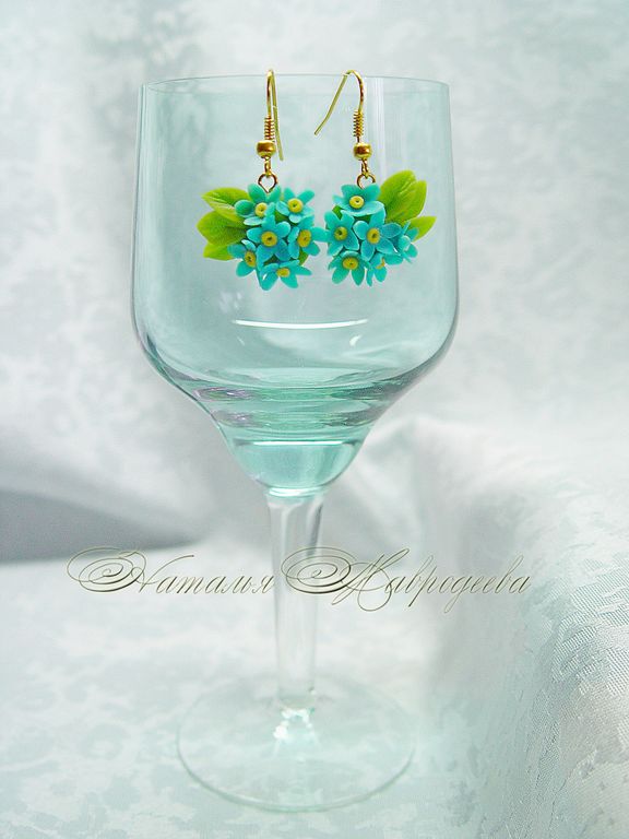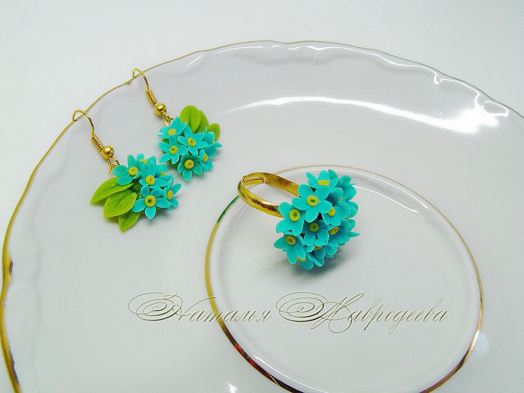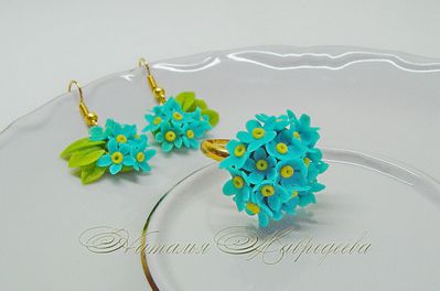 Комплект украшений "Незабудки" выполнен вручную из полимерной глины.