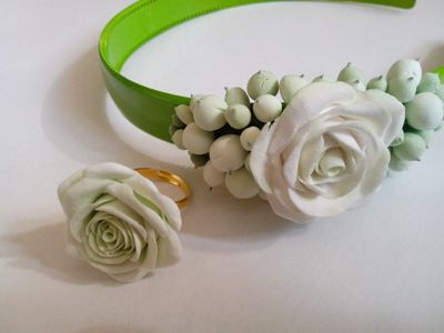 Кольцо и ободок выполнены из полимерной глины и тонированы полностью вручную.