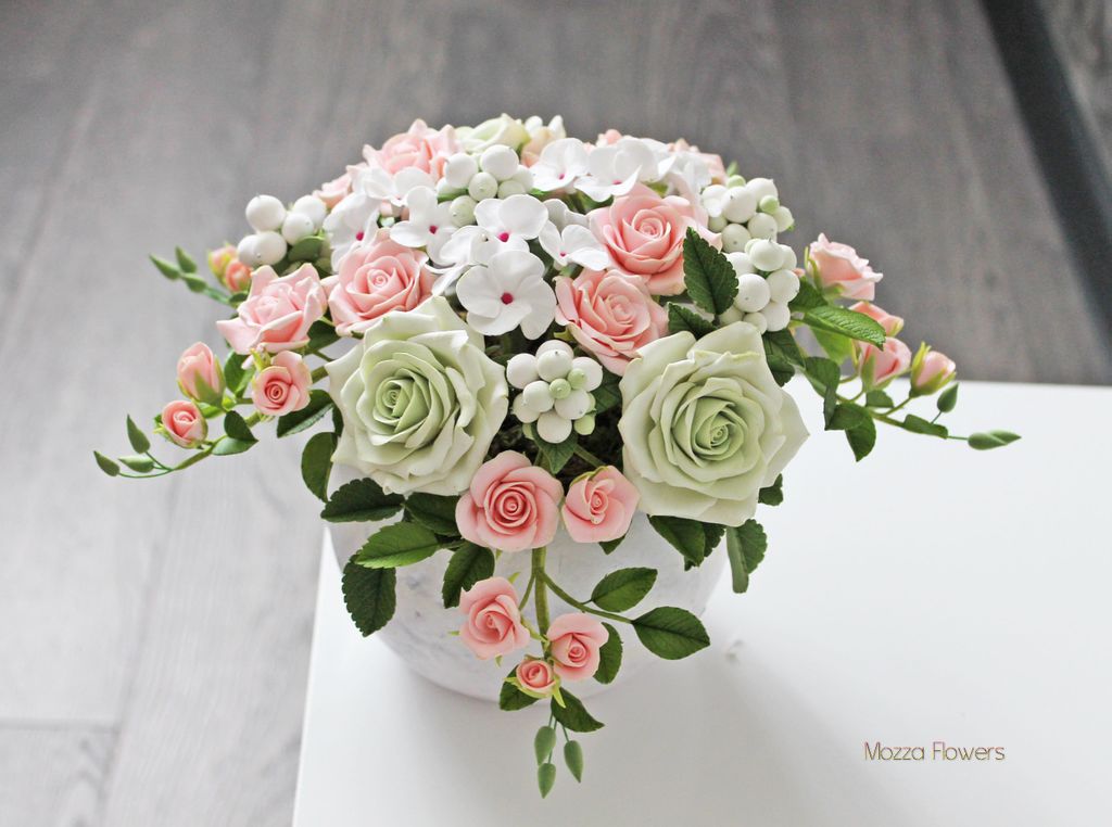 Нежный, изящный, изысканный букет наполнит Ваш дом атмосферой тепла и уюта, любви и нежности. Отличный подарок для любого случая!Букет "Вальс любви" выполнен полностью из полимерной глинывручную.