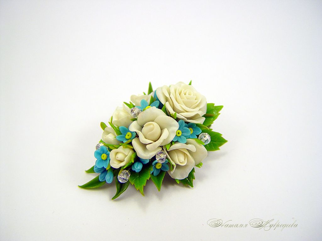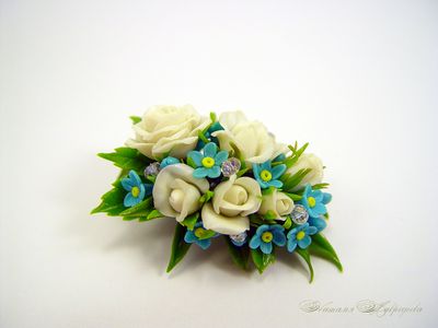 Брошь выполнена из полимерной глины и тонирована красками полностью вручную.