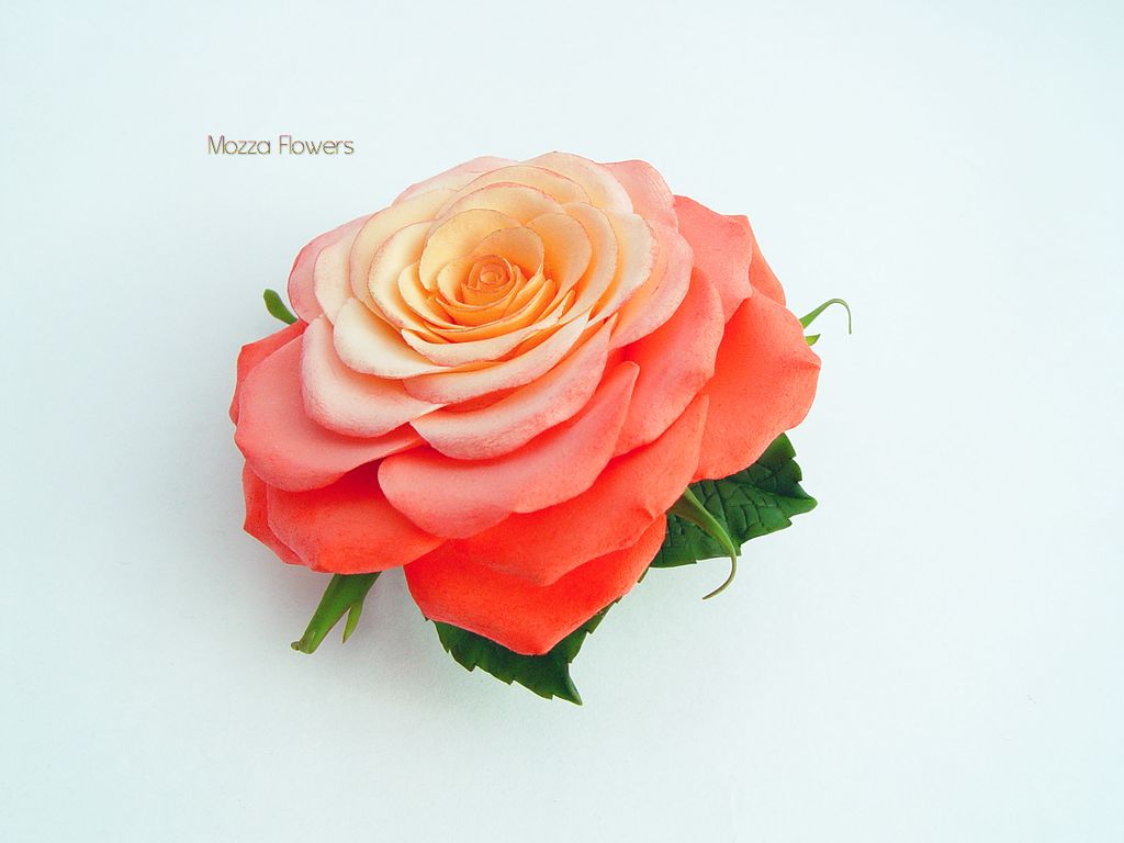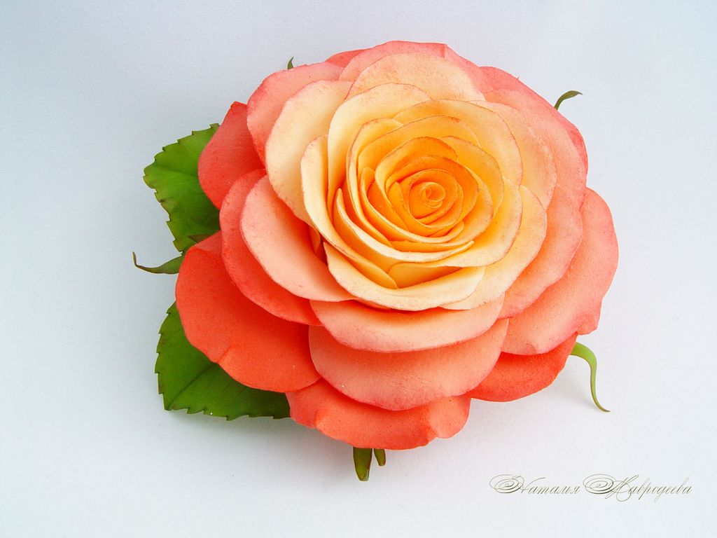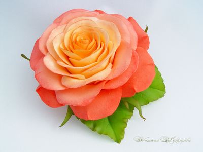 Брошь- заколка выполнена полностью вручную, лепесток за лепестком, тонирована маслом. Использовано 2 вида полимерной глины - claycraft by deco и холодный фарфор.