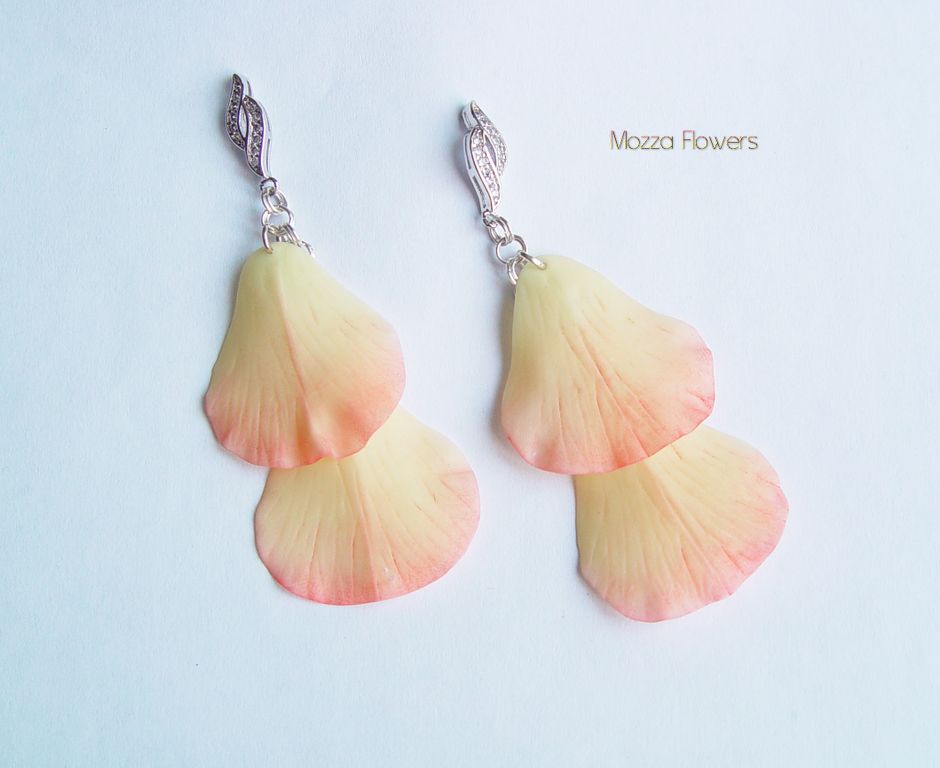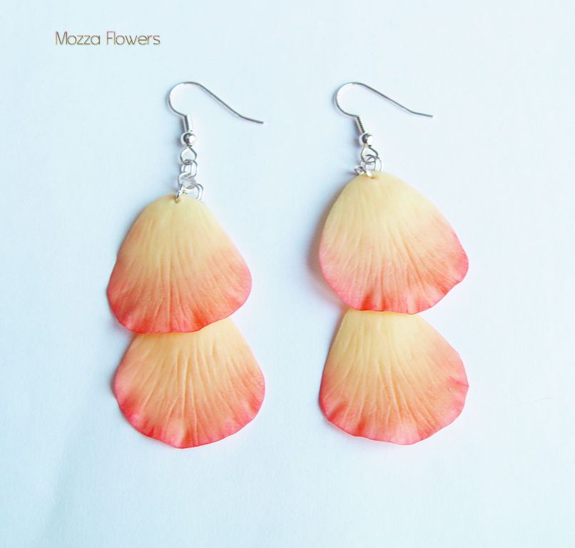 Лепестки слеплены из самоотвердевающей полимерной глины и тонированы масляными красками полностью вручную.