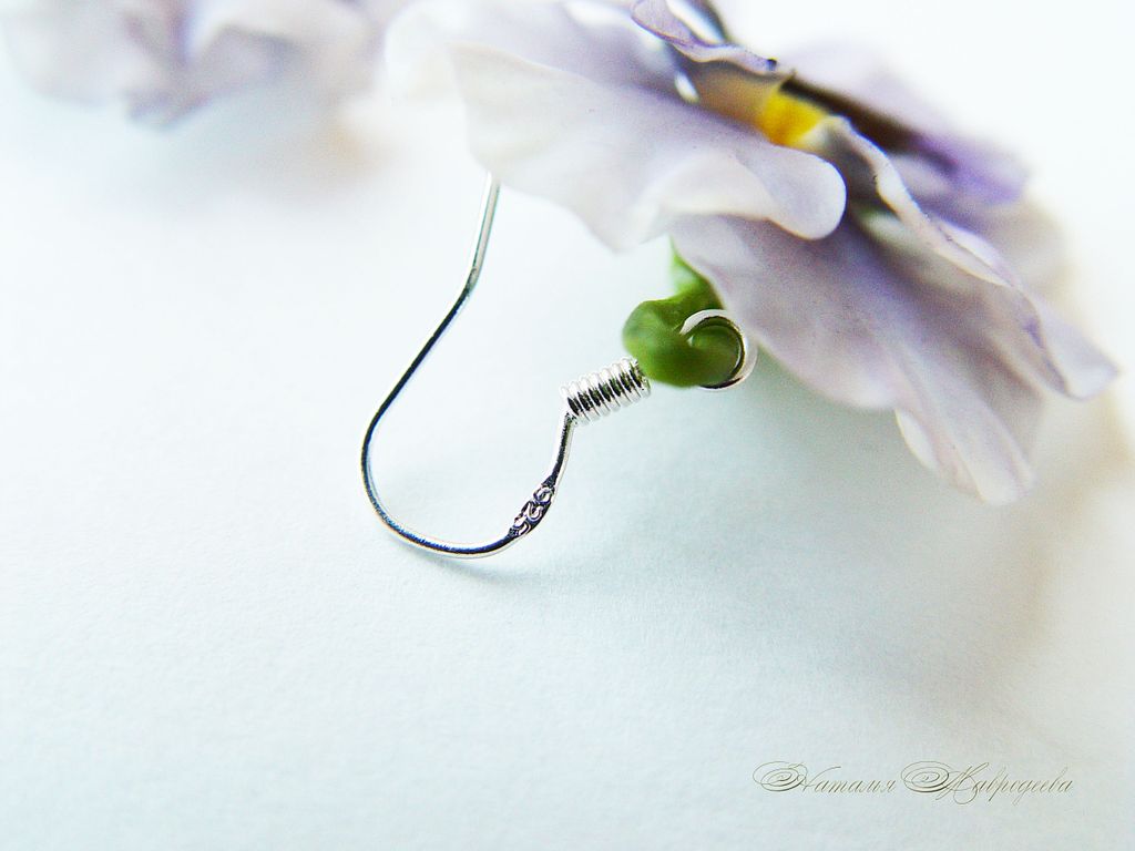 Серьги слеплены из самозастывающей полимерной глины лепесток за лепесток и тонированы маслом полностью вручную.