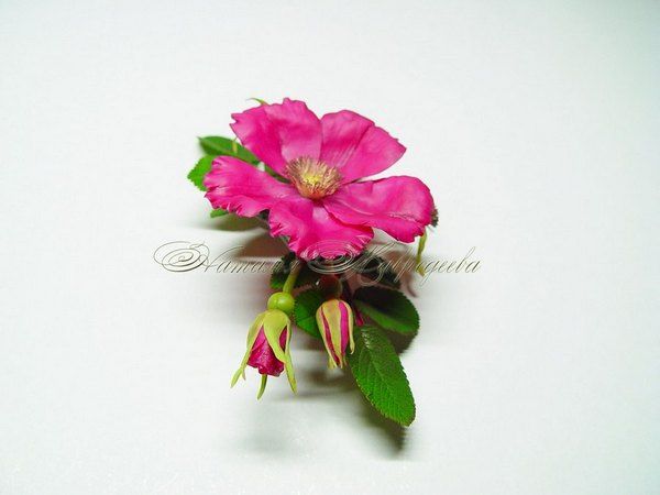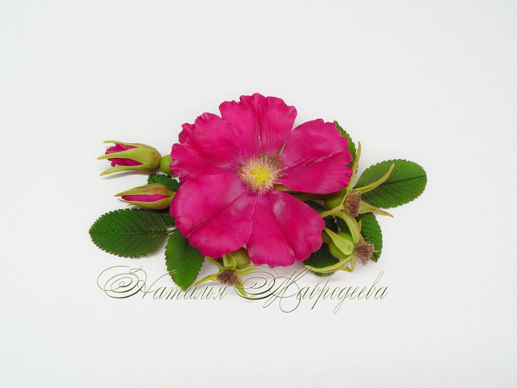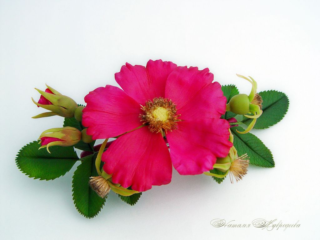 Заколка-автомат "Ярко-розовый шиповник" выполнена из полимерной глины и тонирована вручную.