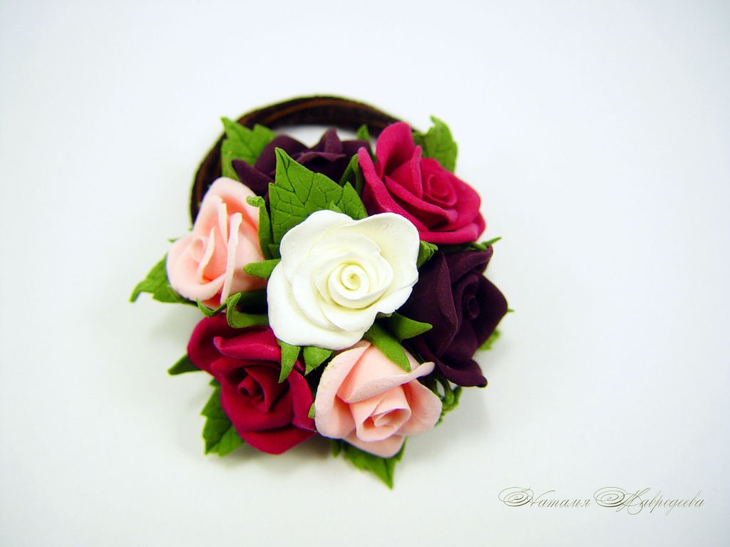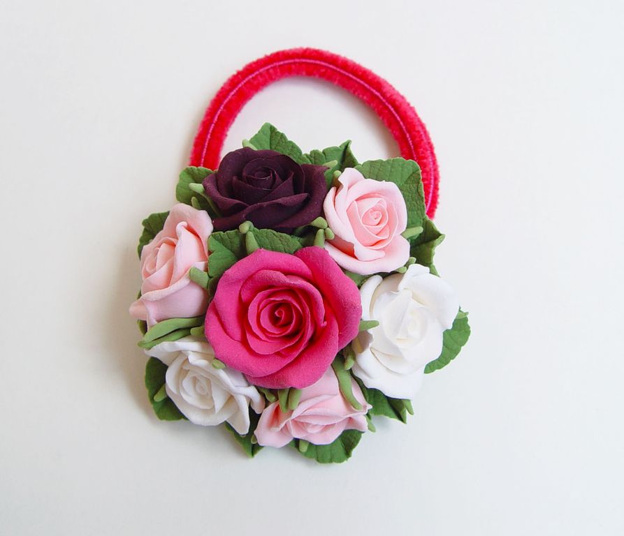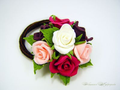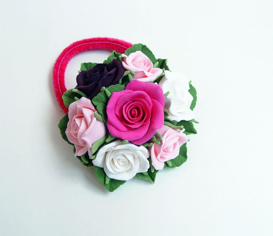 Резинка для волос "Разноцветные розы" выполнена из полимерной глины полностью вручную.