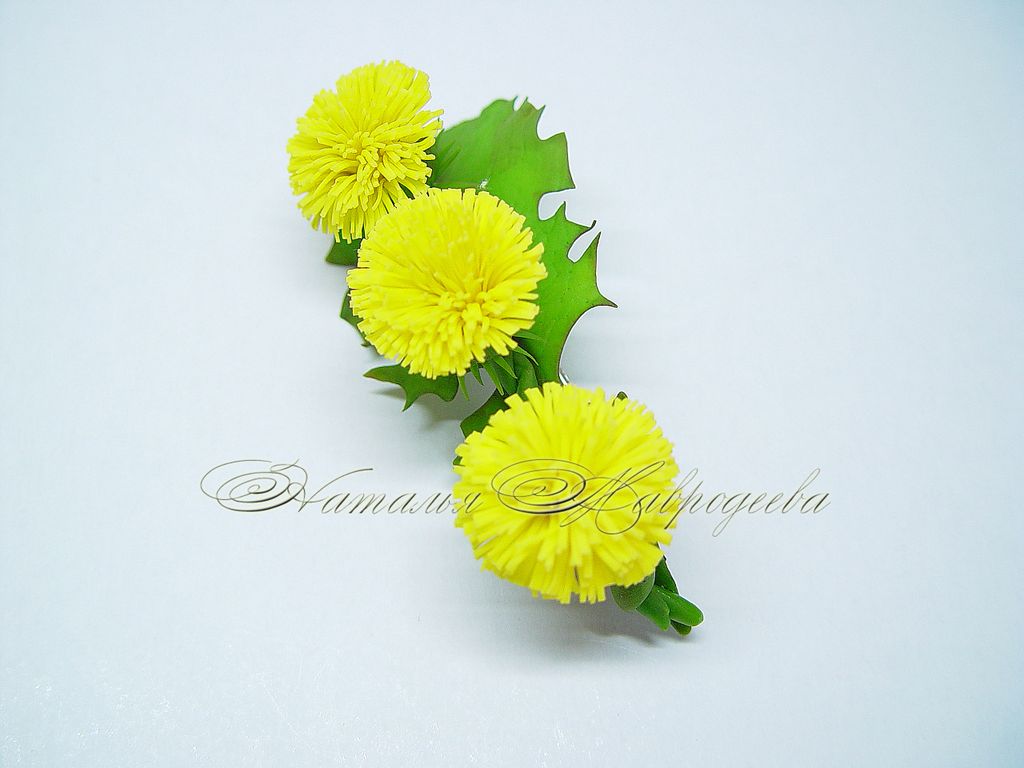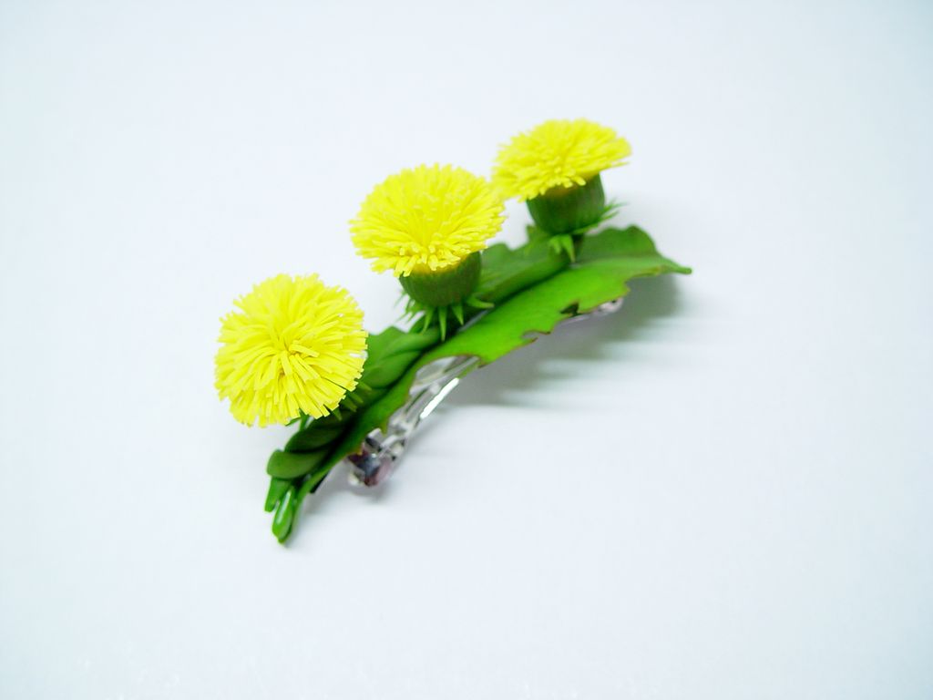 Заколка-автомат "Одуванчики" выполнена из полимерной глины и тонирована вручную.