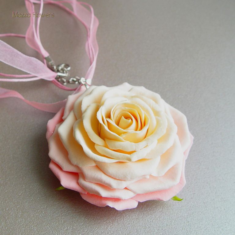 Кулон "Хрустальная роза" выполнен полностью вручную из полимерной глины.