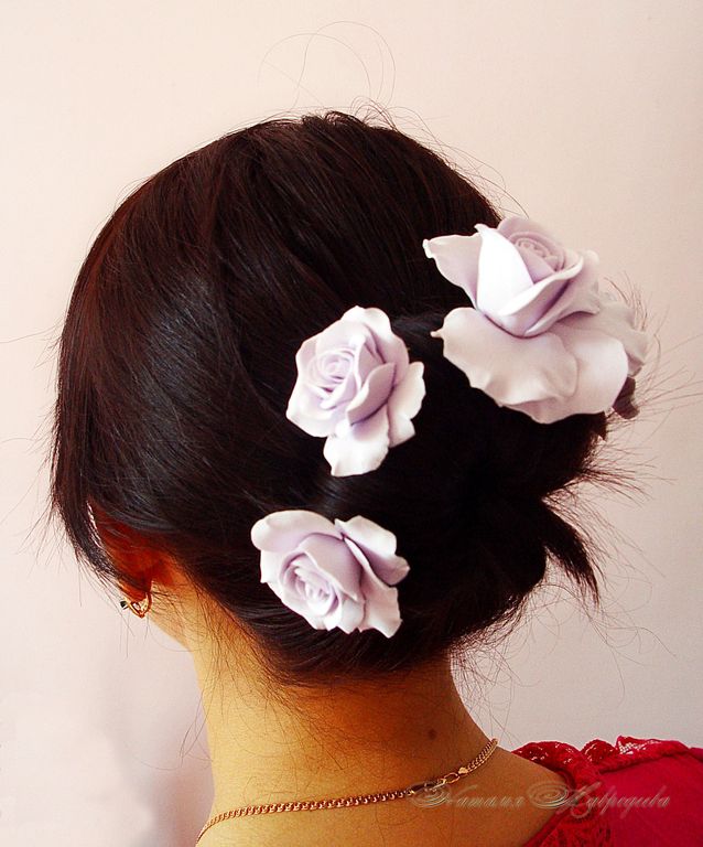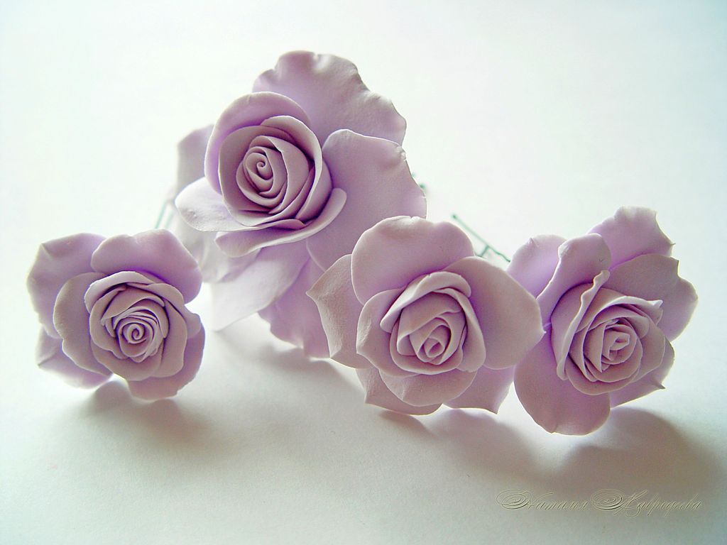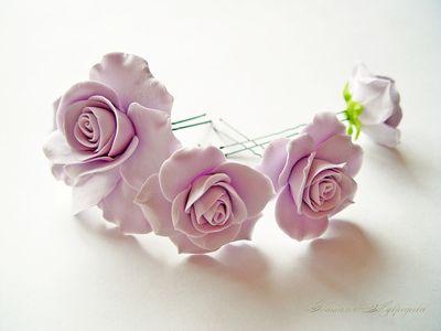 Шпильки вылеплены из бархатной полимерной глины Claycraft by Deco полностью вручную, лепесток за лепестком.