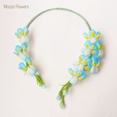 Колье с голубыми ирисами слеплено полностью вручную, лепесток за лепестком, из полимерной глины (холодный фарфор), расписано маслом.