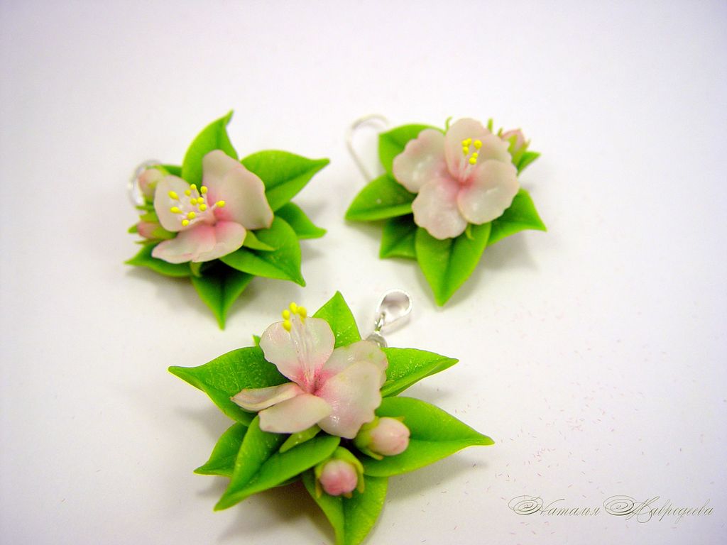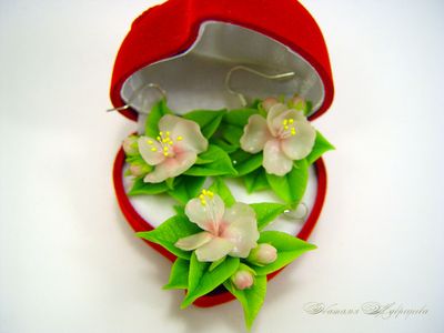 Комплект выполнен из полимерной глины и тонирован маслом полностью вручную.