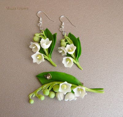Комплект состоит из сережек и броши.