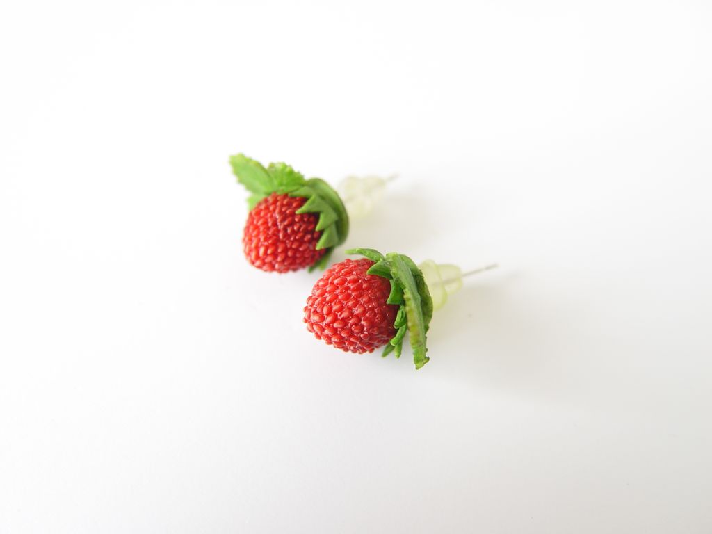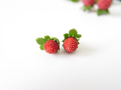 Серьги-гвоздики с земляничками выполнены вручную из полимерной глины.