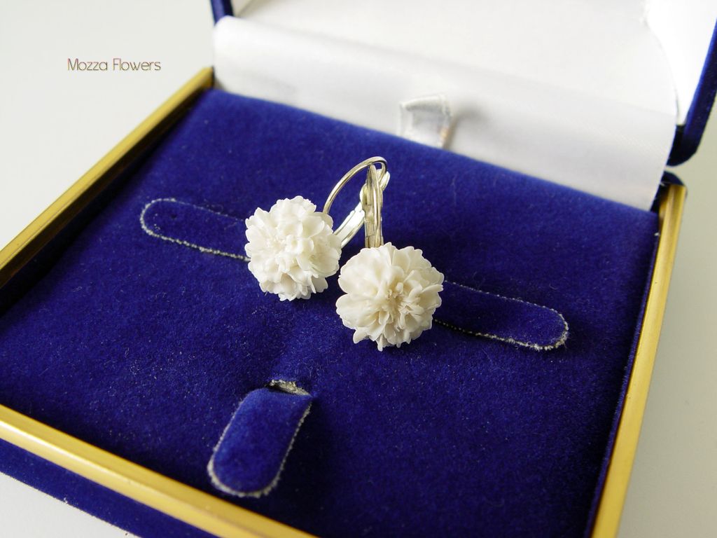 Серьги "Снежок" слеплены из полимерной глины вручную.