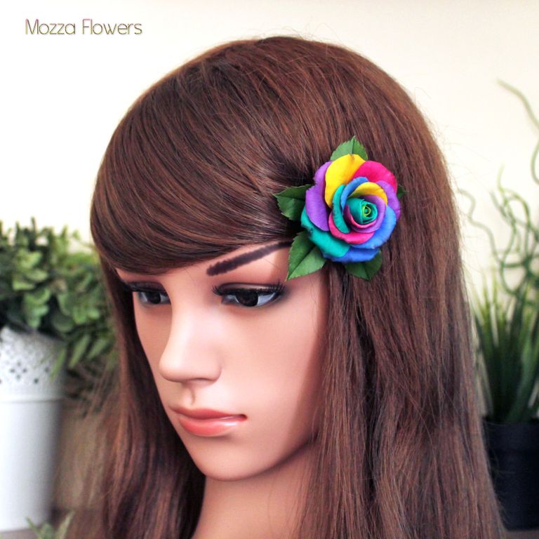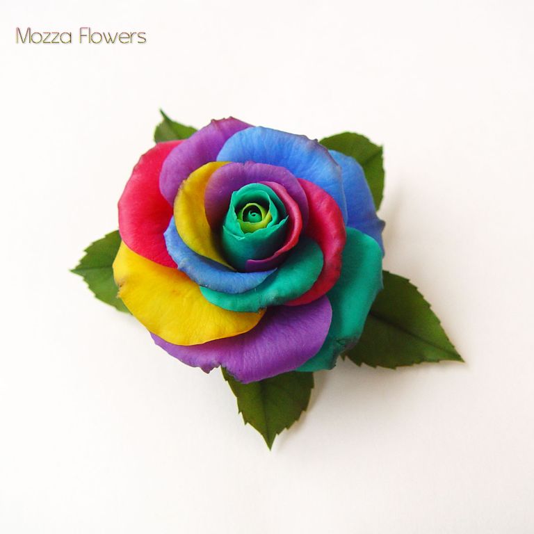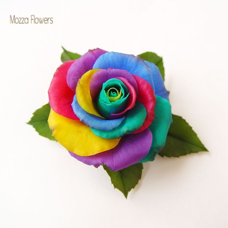 Под заказ возможно изготовление любых украшений с радужными розами, а также возможно изготовление полноразмерных радужных роз или букета из радужных роз.