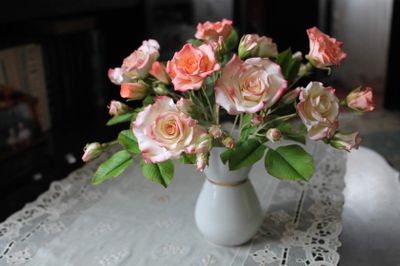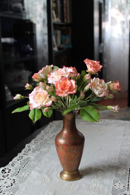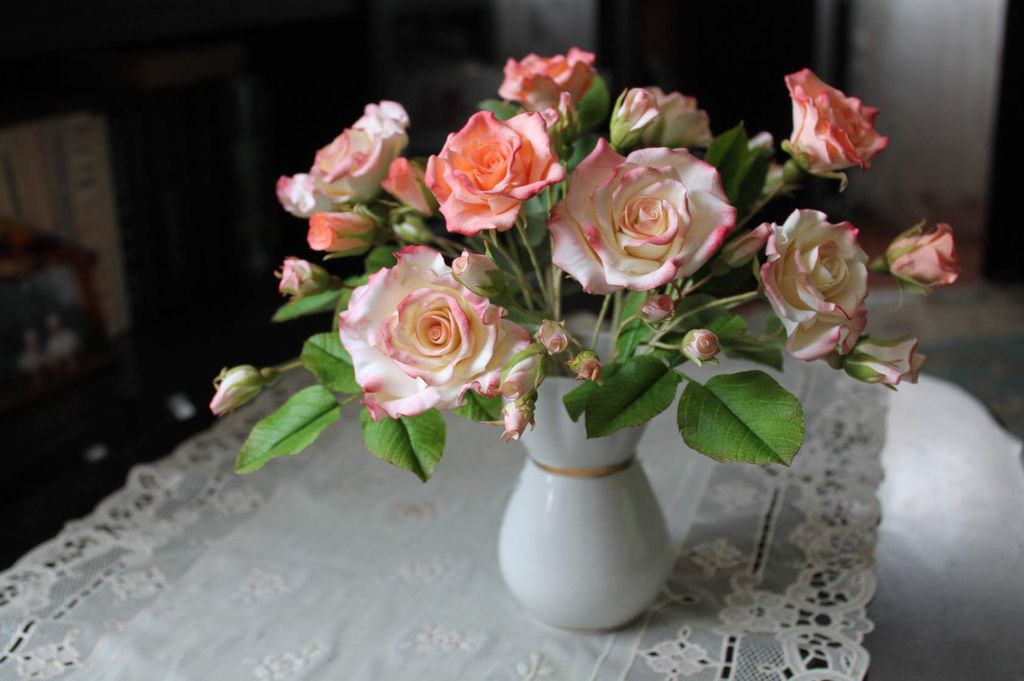 Букет "LOVE" слеплен вручную из полимерной глины лепесток за лепестком , листок за листком и тонирован масляными красками .